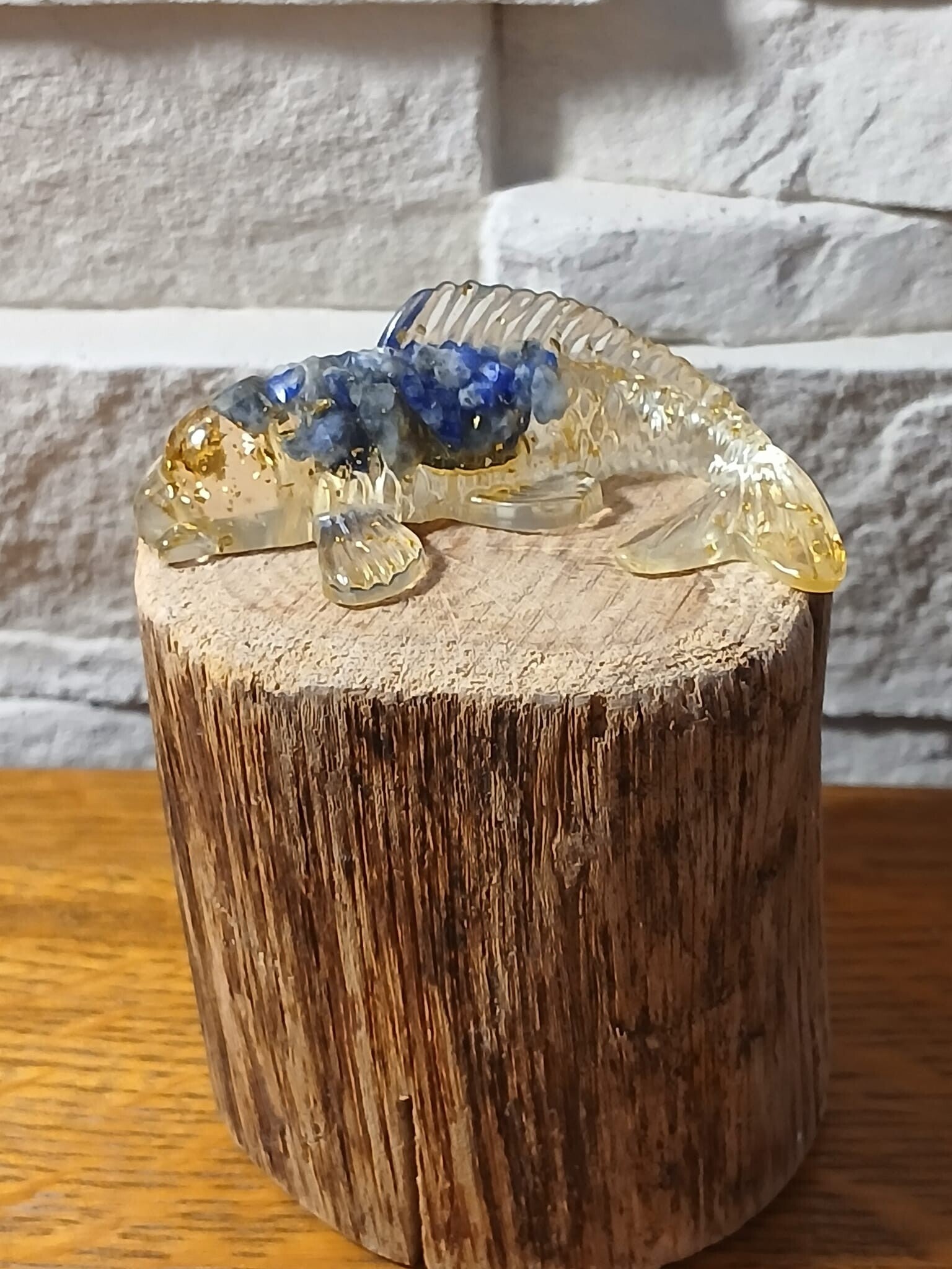 Orgonites (in koi-vorm) van:Turkoois,Regenboog Fluoriet,Lapis-Lazuli,Zwarte Obsidaan en Groene Fluoriet.